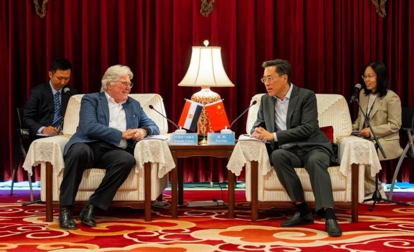 بحث الفنان حسين فهمي، رئيس مهرجان القاهرة السينمائي الدولي، سبل تعزيز التعاون الإعلامي مع فان يون، نائب رئيس التحرير في مجموعة الصين للإعلام ورئيس تحرير شبكة تليفزيون الصين الدولية، وذلك خلال جلسة عمل مشتركة هدفت إلى توسيع نطاق التغطية الدولية للمهرجان.